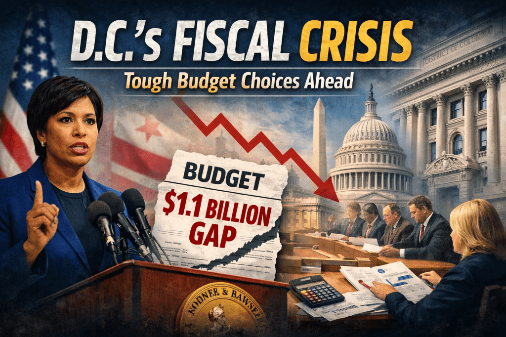 According to reporting from The Washington Post, Muriel Bowser and her administration told members of the D.C. Council this week that maintaining current programs and services would require roughly $1.1 billion in additional revenue — a staggering figure for a city already facing economic uncertainty, soft commercial real estate markets, and long-term structural pressures.