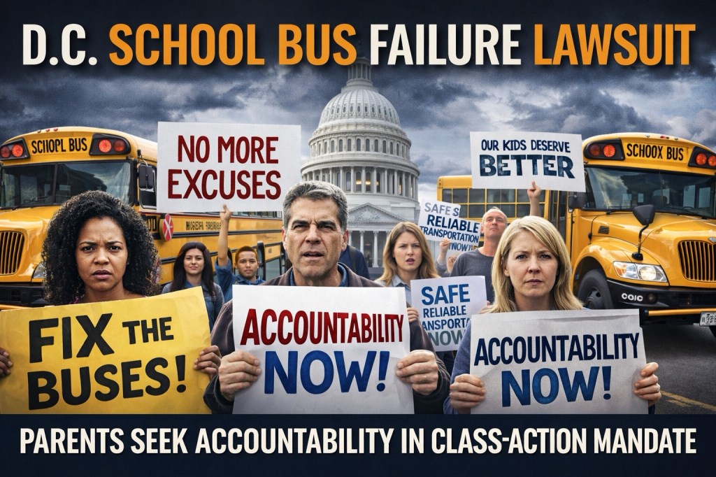 According to reporting by WTOP, parents have sued over chronic delays and missed pickups involving D.C.’s Office of the State Superintendent of Education (OSSE), which oversees transportation services for students — particularly those with disabilities who rely on specialized bus routes.