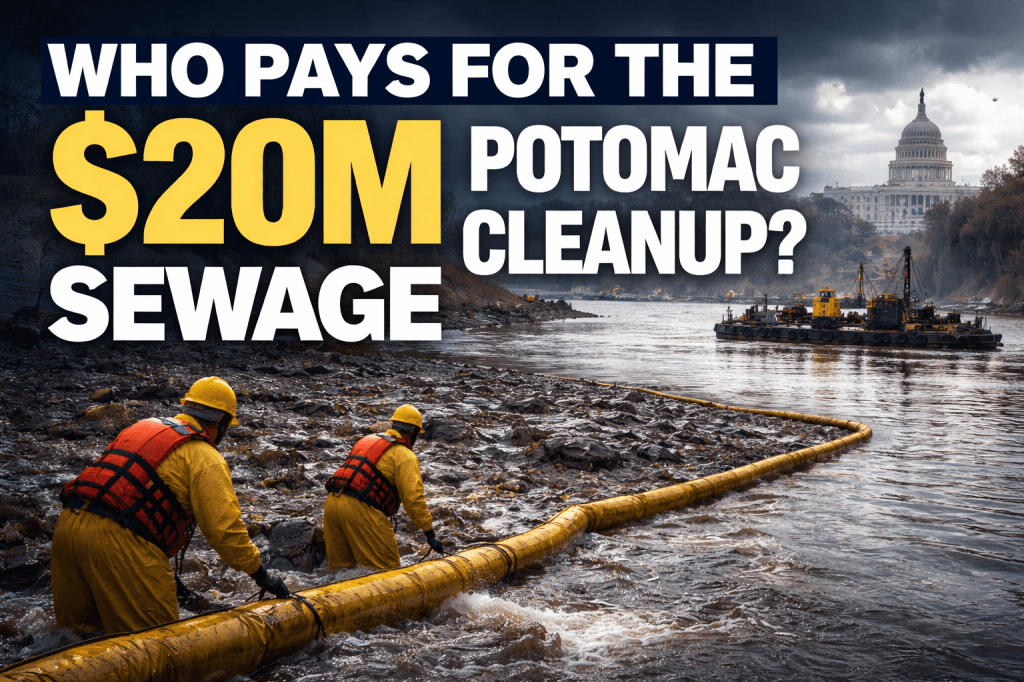 The price tag for the Potomac River sewage cleanup and emergency repairs is climbing past $20 million — and the biggest question facing Washington right now is simple: Who pays?